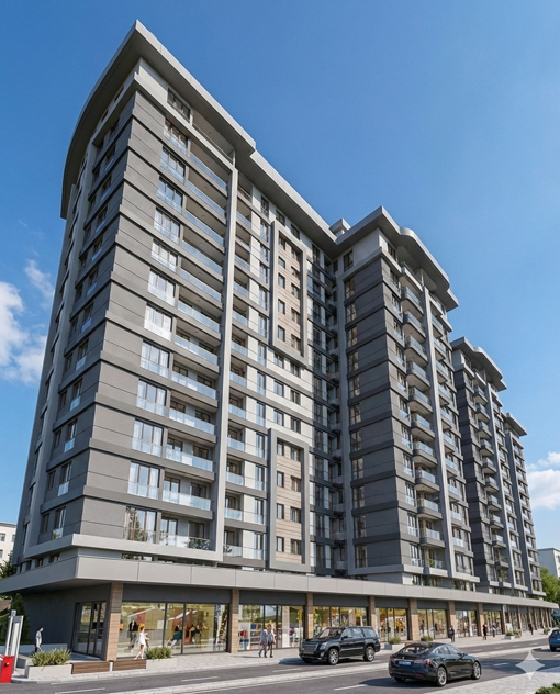Projemiz ortak bir platform üzerinde yükselen 14 katlı 2 bloktan oluşmaktadır. Bu bloklar 1+1, 2+1, 3+1 ve 4+1 daire ve 10 adet ticari dükkândan meydana gelmektedir.